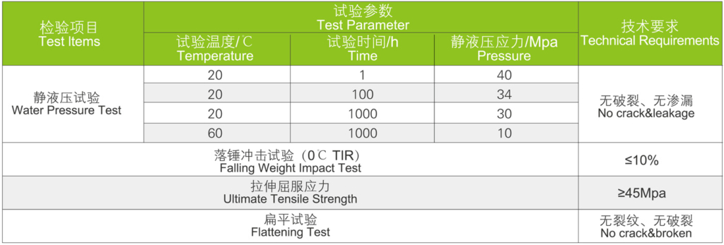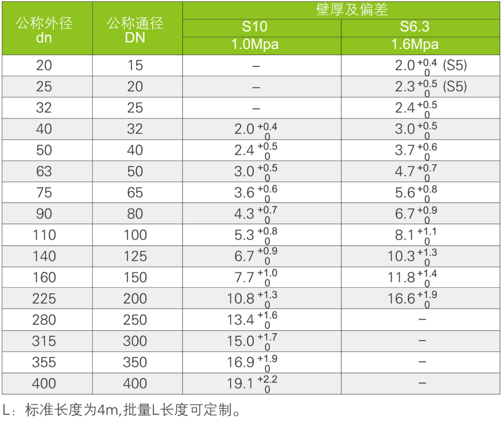 This piping achieves a maximum pressure rating of 1.6MPa (S6.3 series, 20mm specification) and a maximum operating temperature of 90°C. It withstands highly corrosive media such as 98% sulfuric acid and 30% hydrochloric acid. With an oxygen index ≥40%, it exhibits excellent flame retardancy. Its thermal expansion coefficient is only 0.07mm/(m·℃), and its hygiene standards comply with GB/T 17219 requirements, with a bacterial growth rate <0.1%/day.
