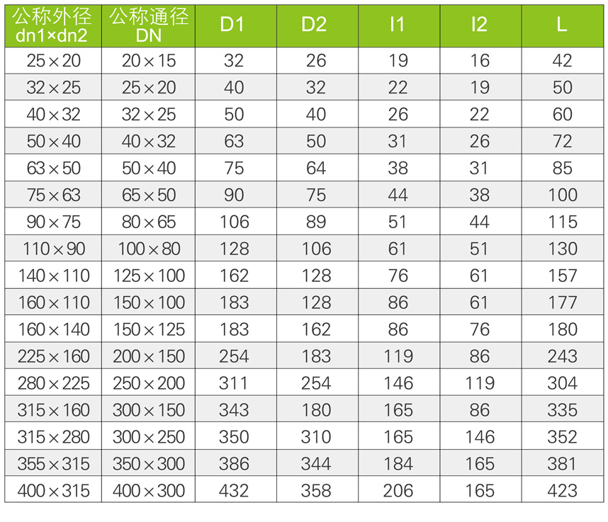 Size: DN20x15 to DN400x350